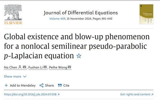 2022级博士研究生陈娜在数学专业顶尖期刊Journal of Differential Equations发表学术论文“Global existence and blow-up phenomenon for a nonlocal semilinear pseudo-parabolic p-Laplacian equation”,陈娜是论文的第一作者和通讯作者,性爱网站