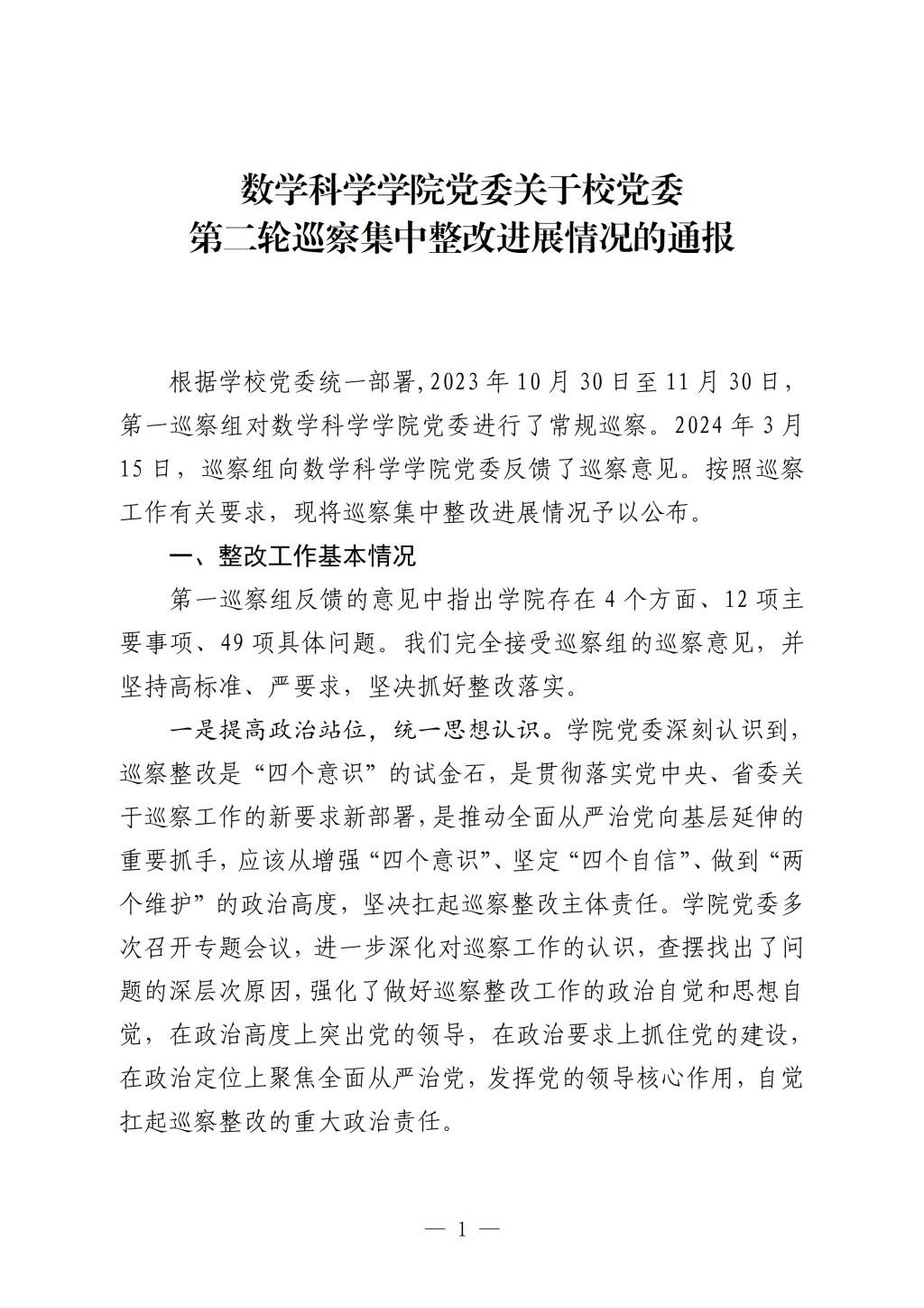 性爱网站 党委关于校党委第二轮巡察集中整改进展情况的通报
