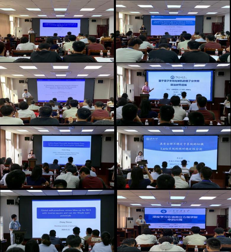 会议期间,多位研究生进行了精彩的专题报告与深度对话。他们展示了在各自研究领域取得的最新成果,涵盖非线性薛定谔方程、量子分类器算法、对流扩散方程的弱Galerkin有限元方法等多个前沿课题,展现了数学领域蓬勃发展的新生力量。与会同学围绕数学研究的热点问题进行了深入探讨,分享了各自的研究心得和体会,会议气氛热烈。此次会议不仅促进了研究生学术研究的深入交流,还为推动研究生科研合作搭建了重要桥梁。