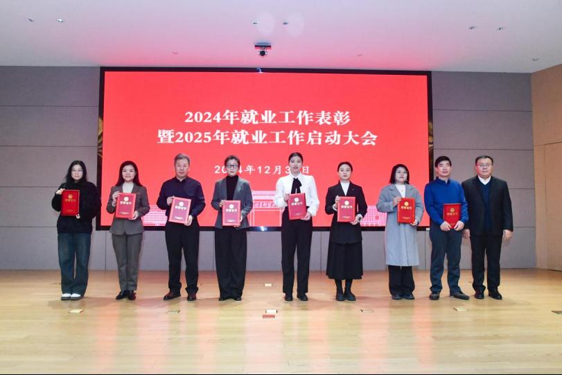 讯(通讯员:郑晓彤)2024年12月30日,学校召开2024年就业工作表彰暨2025年就业工作启动大会。会议对2024届毕业生就业工作中取得突出成绩的先进单位和个人进行了表彰。学校领导班子成员出席活动,各学院党委书记、院长,各相关部门、单位主要负责人,研究生处、学生工作部、校团委的全体成员及全体辅导员参加会议。