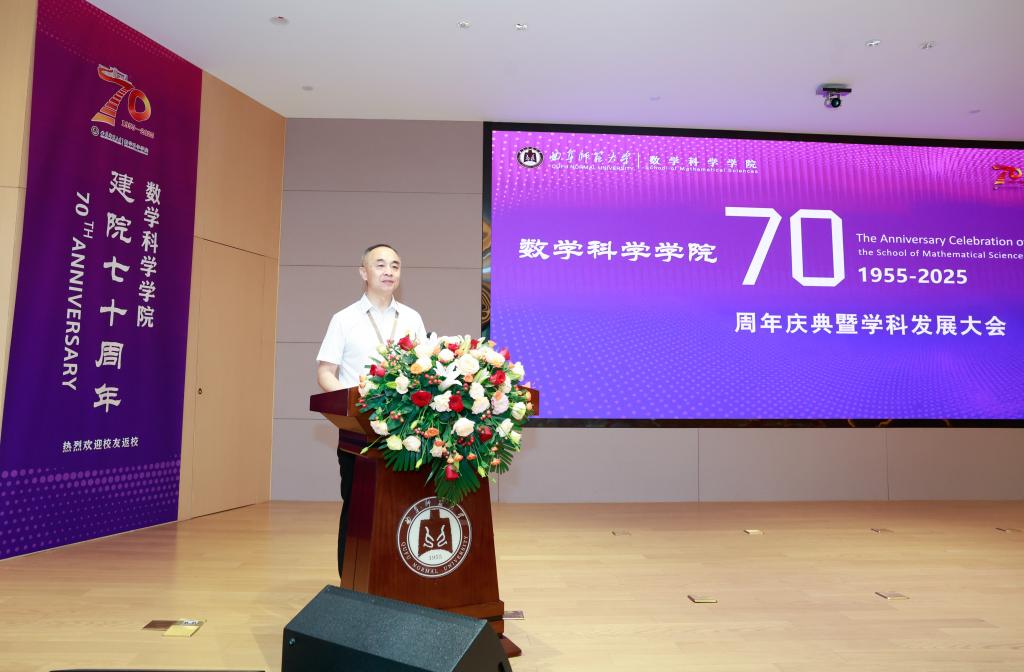 会上,学校党委副书记、校长张洪海在讲话中指出,数学学科作为建校基石之一,底蕴深厚,从建校初期获毛主席赞扬的 “公社数学”,到服务国家建设荣获国家科技进步特等奖的运筹学 “两法”, 众多学术大家在此传道授业,奠定了坚实学术根基。张洪海强调,数学学科实现从专修科到完备人才培养体系的跨越,稳居 ESI 全球前 1%,为学校和山东省数学及相关学科发展贡献卓越,还培养出以郭雷院士为代表的大批精英人才,广受赞誉。张洪海要求数学学科立足现实,展望未来,要聚焦立德树人,在“教育强国、曲师何为”的时代答卷中展现“数学作为”;要勇担创新使命,力争产出更多原创性、标志性成果,为破解关键科学难题贡献“数学方案”;要擦亮学科品牌,为国家战略和区域高质量发展持续贡献“数学力量”,号召全体师生、校友共同谱写曲园数学新的璀璨篇章。