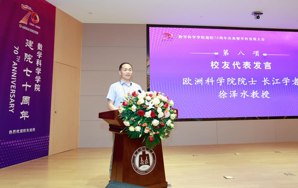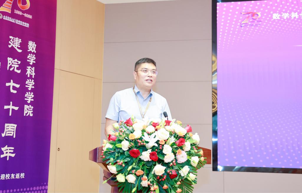 来宾代表麻希南教授在致辞中回顾起2008 年起多次到访学院的经历,称赞学院人才培养质量高,其身边的曲园数学校友学风朴实、数学基础扎实、热爱专业。他高度肯定学院培养出包括中国科学院院士在内的大批优秀人才,期望学院以院庆为新起点,坚持高质量科研,聚焦省属高校拔尖人才培养,以内涵式发展赢得社会声誉,为教育强国建设贡献力量 。