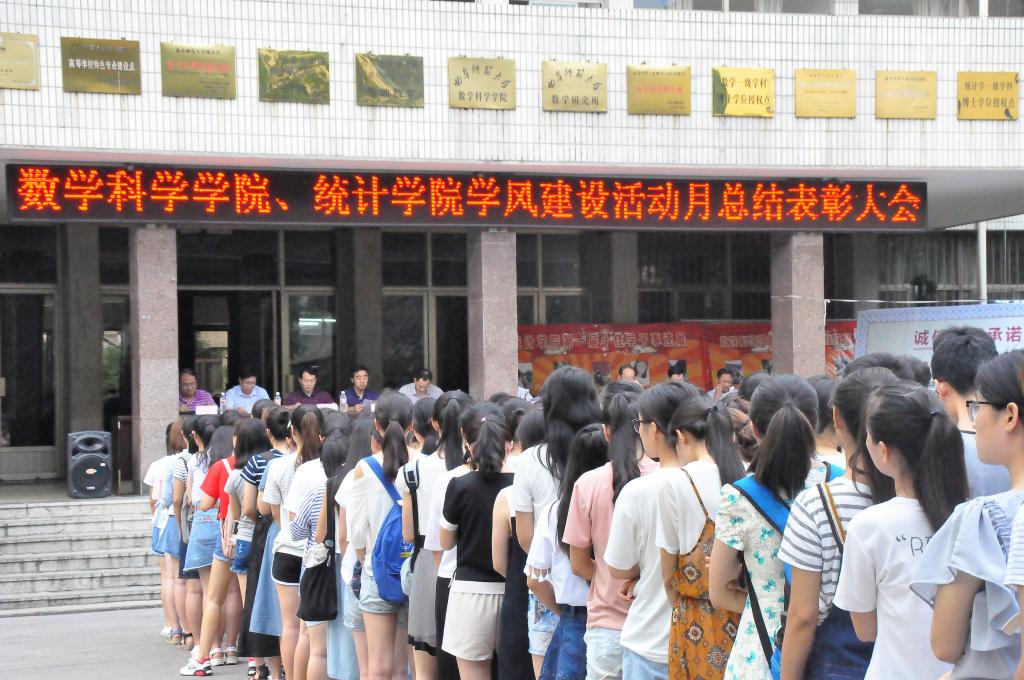 、统计学院在数学系楼前隆重举行2017年上半年学生建设活动月总结表彰大会,副校长辛杰、教务处、学生工作处、团委、性爱网站