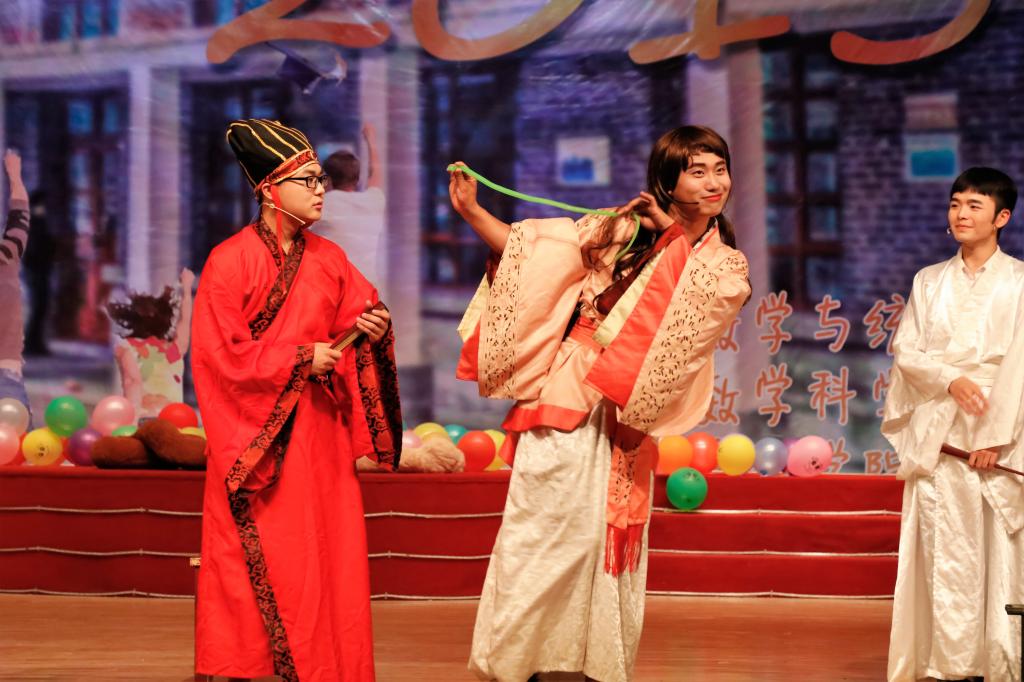 毕业生原创视频《万万没想到》,一时间掌声、欢呼声不断,将全场气氛点燃。整场晚会内容丰富多彩,精彩不断,表演者们各展所长:舞蹈、歌曲、相声、小品,为老师和同学们带来了一场视觉与听觉的盛宴。其中2013级各班学生代表演唱的《曲师大版成都》蕴含了每一个曲园学子对曲园深深的爱意,歌曲最后王作茂、刘永礼、朱伟卫、郑召文四位老师依次上台表达了对毕业学子的祝福,这浓浓的师生之情,将晚会推向了高潮。最后,在歌曲《不说再见》的优美旋律中,全体表演者走上舞台,和大家挥手告别,晚会落下帷幕。