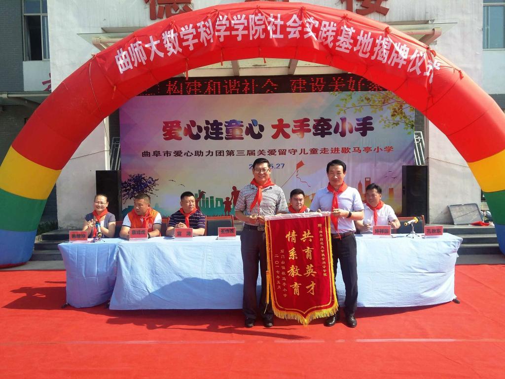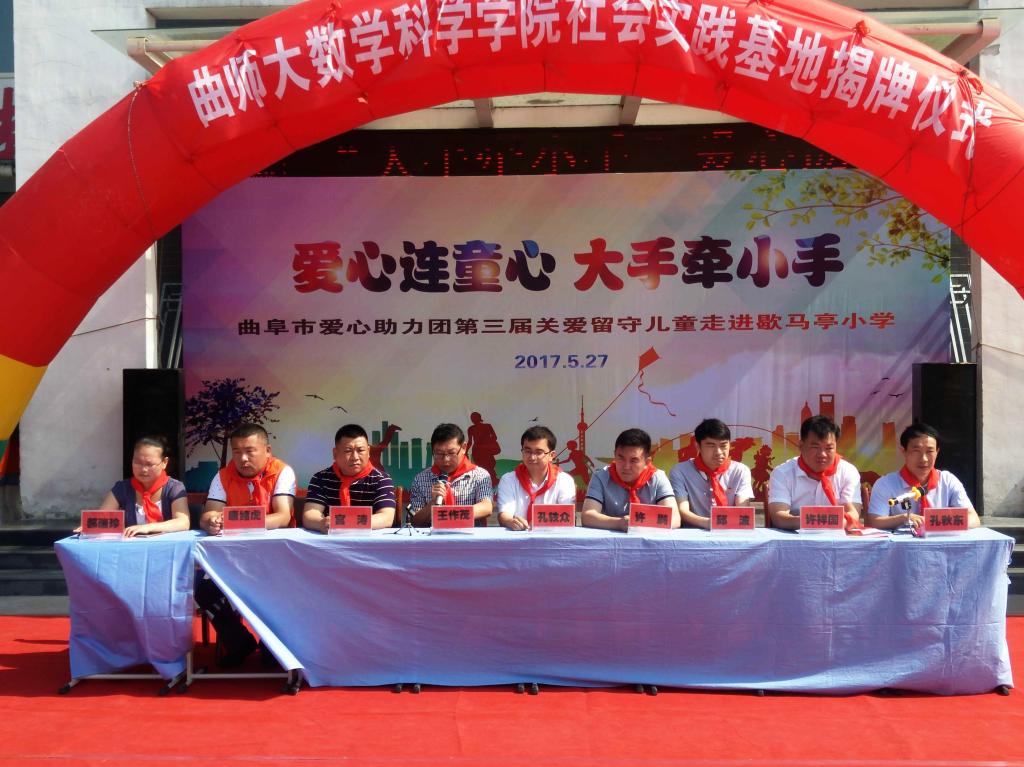 团委副书记孔轶众,数学与统计学院党委副书记王作茂,团委书记刘永礼等辅导员,曲阜市民政局、团市委等部分机关单位领导负责人以及歇马亭小学全体领导师生参加了此次活动。