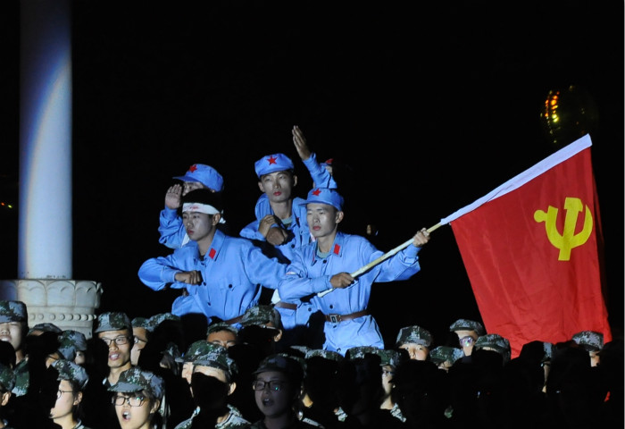 压轴登场,振奋人心的开场,嘹亮的歌声,庄严的指挥,鲜红的旗帜,缤纷的礼花,自信的口号,整齐划一的动作,惟妙惟肖的人物塑像等无一不彰显着性爱网站