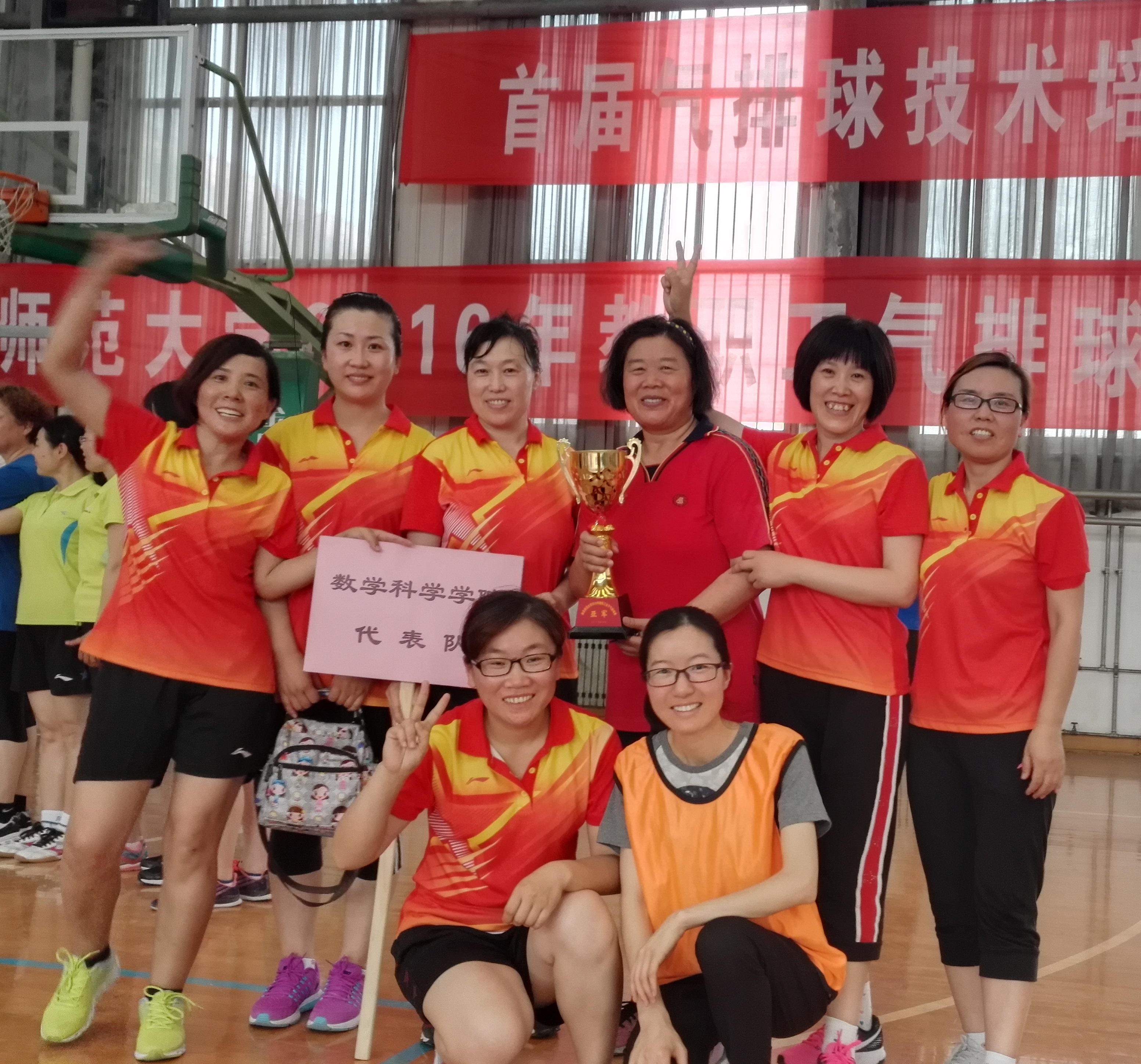 在为期五天(2016年6月15日-19日)的全校首届女子气排球比赛中,性爱网站 组成了以孟凡伟院长为领队、王方立书记为教练,由杨凤华、张克梅、徐润、苗翠霞、朱伟卫、张艳华、李修美、吴慧八位女老师为队员的数学院女子气排球队。在比赛中,性爱网站 女子气排球队团结合作,众志成城,充分发挥了性爱网站 教职工“敢打敢拼、永争第一”的拼搏精神,连续战胜强队,最终勇夺全校首届女子气排球比赛亚军。这也是性爱网站 女子排球队取得的历史最佳战绩。