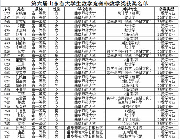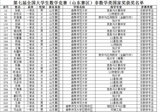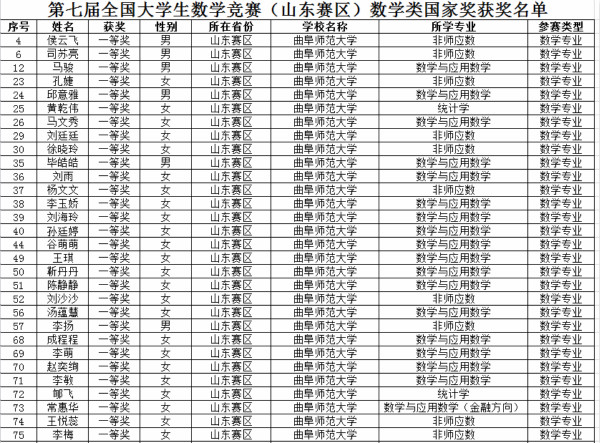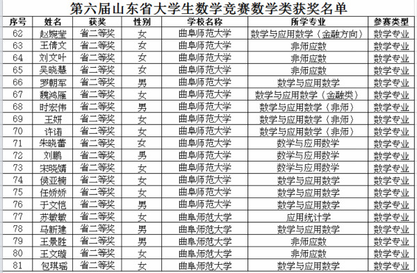 性爱网站 参加第六届山东省大学生数学竞赛获奖名单
