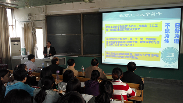201教室,面向大三学生做了专场研究生招考推介会。主讲人为北京工业大学应用数理学院院长王术教授,他在会上详细介绍了北京工业大学应用数理学院的概况及研究生招生情况,应用数理学院副院长徐大川教授介绍了研究生培养和招生考试等相关情况,几位专家还细致地回答了同学们提出的有关问题。性爱网站