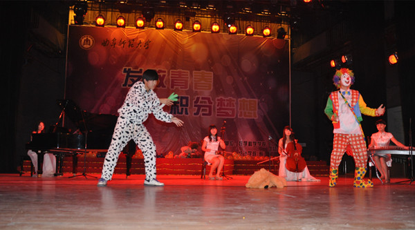 6点40分,现场灯光熄灭,全场安静,孟院长为本次晚会致辞。他向2014级同学提出了要求,表达了期望,和蔼亲切的声音关爱着会场每一个角落的学生。随后,红色幕布缓缓升起,现场的欢呼尖叫瞬间爆发,CF舞团带来的热舞掀起了本次晚会的第一个高潮。在主持人诙谐幽默的话语中,晚会顺畅的进行着,现场气氛和谐而温馨,直到杜晨曦老师登上舞台,同学们才再一次陷入疯狂之中,或鼓掌或欢呼,微博墙上“杜老师,我们爱你”的文字数不胜数,融洽的师生情在晚会中又一次升华。此次晚会有太多的精彩,“十佳歌手”冠军陈家祺酣畅淋漓的高歌、小品《甄嬛传》中华妃不顾形象的逗乐、14级各班班长和团支书费尽心思的走秀都为我们带来了感动、欢笑和难忘的回忆。最后,王作茂老师、朱伟卫老师、宋玉光老师和杜晨曦老师的合唱——《同一首歌》为本次晚会画上了圆满的句号,在歌声中全部演职人员登场,挥手告别。再美好的时刻都会说再见,此次分别,让我们带着梦想,从明天开始起航!