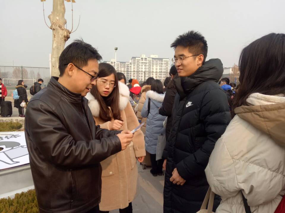 据悉,为帮助同学们缓解考前的紧张心情、鼓励同学们积极自信参加考试,学院党委副书记曲凤东一大早就前往水果批发市场为同学们采购橙子,寓意心想事成,一次成功。橙子到达学院后,同学们欢呼雀跃,纷纷发QQ、朋友圈、微博赞叹“太暖心”“爱我数科院”“一定成功”!20日上午,数学科学学院辅导员老师前往学生乘车集中点,为他们打气加油。