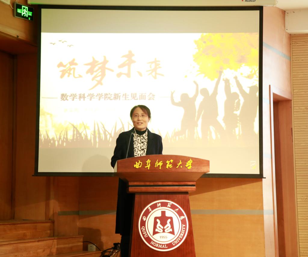 优秀青年教师代表马翠芹老师对数学专业课的学习方法进行了深刻阐述。她指出,进入大学学好专业知识是我们的第一要务,提高专业学习成绩,诚信参加考试,才能在未来有更好的机会和选择。大学是开放的,大学生活是多彩的,在好好学习之外,应提高自己的综合素质,积极参加学院学校组织的各项活动。随后,2018级优秀学生代表孙悦和大家一起分享了她在曲园生活、学习的点滴感悟,并祝愿2021级新生在自己的人生道路上不畏险阻、勇敢追梦。最后,2021级新生代表表达了对大学生活的憧憬和对美好未来的期许。