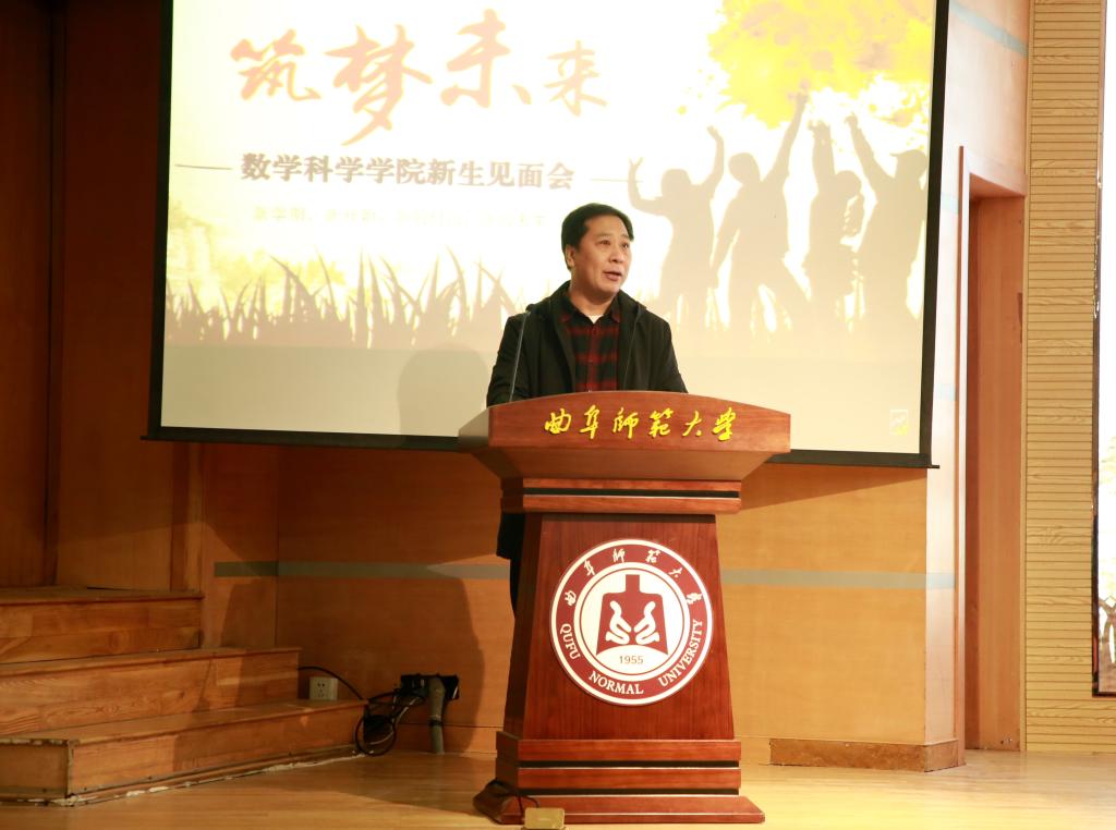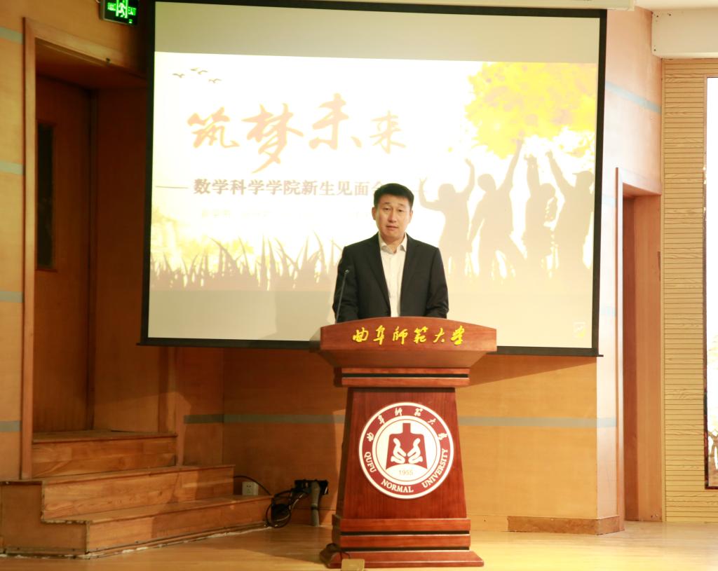 的发展历程,给全体同学上了一堂现场思政课,他首先简要回顾了学院的发展历程,并重点从学位点建设、重点学科建设、师资队伍、教学科研水平、专业发展、杰出校友等方面介绍了学院的基本情况。借此机会,张高飞就如何学好大学数学谈了自己的感受和各位新同学共勉。他希望同学们,一要充分珍惜在学校的学习时光,认真刻苦学习,不能松懈。二要掌握学习数学的方法,达到事半功倍、举一反三的效果。三是从点滴做起,认真听好大学的每一节课。他告诉同学们,大学生活中,不仅要学会做人,更要懂得学术科研之美。
