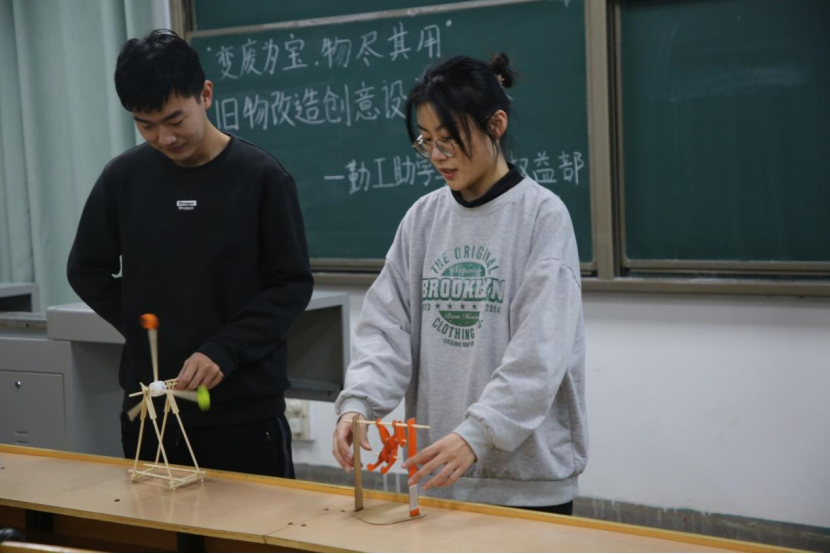 勤工助学部兼心理健康部承办的 “变废为宝,物尽其用“旧物改造创意设计大赛于数学楼201室顺利举办。