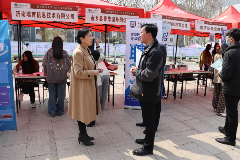 在走访过程中,姜美颖及各学院领导就招聘要求、工资待遇、应往届毕业生单位就业情况等与参会单位进行沟通,在充分了解用人单位的同时,为招聘会顺利召开和学生就业工作提供指导。招聘现场还开设专区,由各学院辅导员为毕业生提供简历完善、求职和面试技巧指导,为学生更好就业做足保障工作。招聘会结束后,用人单位热切希望与学校继续开展交流合作,给学生提供更多实践平台的同时做好单位人才储备,相互促进互利共赢。