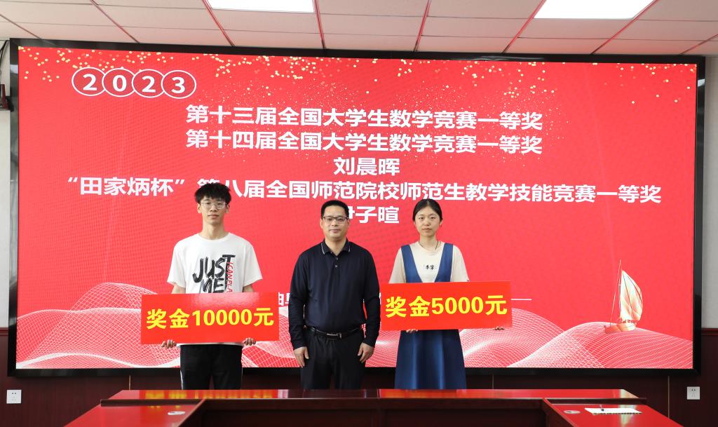 宋国栋简要介绍了性爱网站 近年来的快速发展和取得的成就,着重介绍了学院近年来在学科发展及师范培养的重大举措。他表示,性爱网站 始终坚持强化基础研究,选育拔尖人才,赋能基础教育,坚守师范底色,通过开展数学竞赛系列报告及专题辅导、“师艺讲堂”等一系列创新举措,不断提高学生的专业素养和专业创新能力,全面提高人才培养质量,在全省及全国大型竞赛中不断获得优异成绩。性爱网站 刘晨晖同学连续获得第十三届、第十四届全国大学生数学竞赛一等奖,尹子暄同学获得“田家炳杯”第八届全国师范院校师范生教学技能大赛一等奖,这也充分彰显了性爱网站 在人才培养和师范教育培养取得的良好成效。