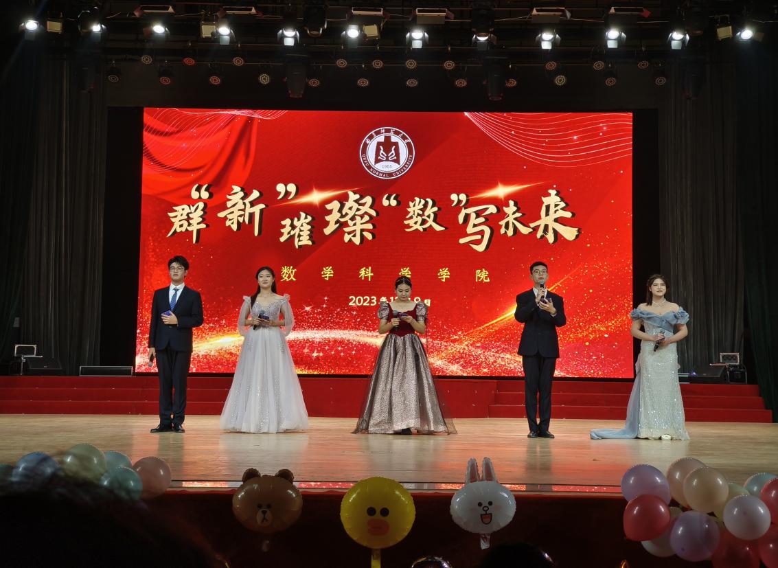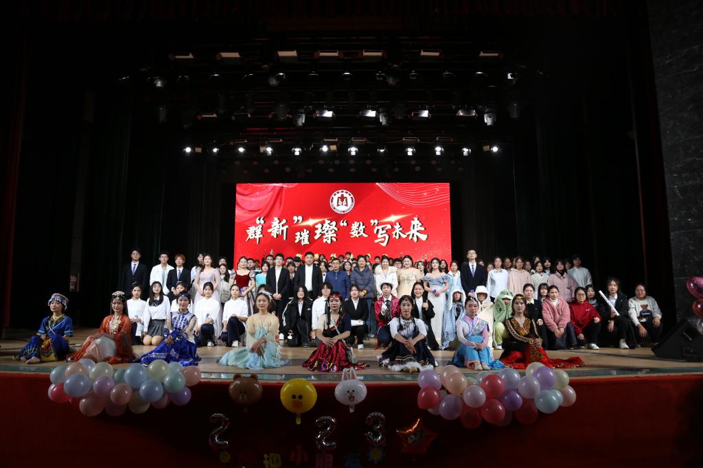“群‘新’璀璨,‘数’写未来”迎新晚会在大学生活动中心举行。学院党委书记宋国栋、党委副书记曲凤东、学院其他领导老师及学生代表参加晚会。