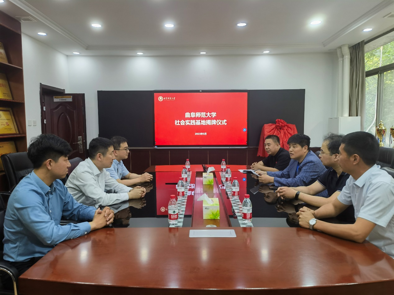 与山东恒美轩商贸公司于5月13日在学院楼305会议室举行了社会实践基地挂牌仪式,学校团委书记孔轶众、学院党委书记宋国栋出席活动。