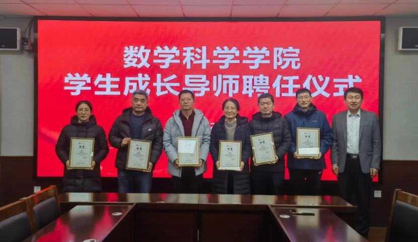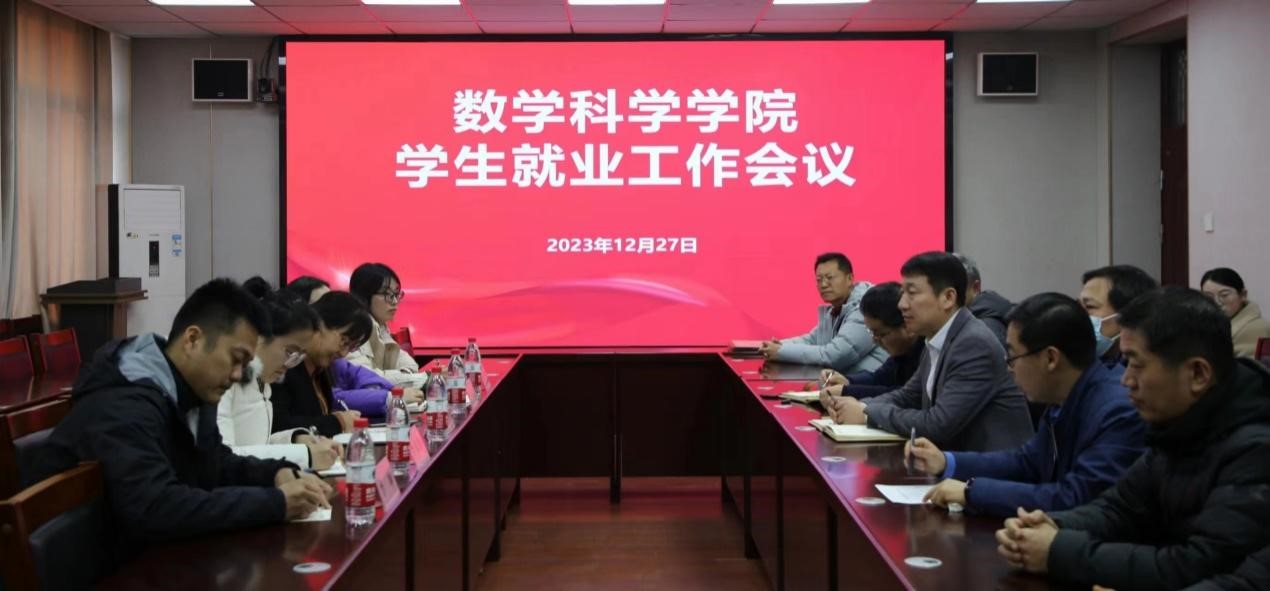 于数学楼304会议室召开学生就业工作会议暨学生成长导师聘任仪式。学院党委书记宋国栋、院长张高飞、副院长王培合、学生成长导师及各年级辅导员出席会议,化学与化工学院党委副书记孙金玲及就业辅导员、毕业班辅导员列席会议,会议由数学科学院党委副书记曲凤东主持。