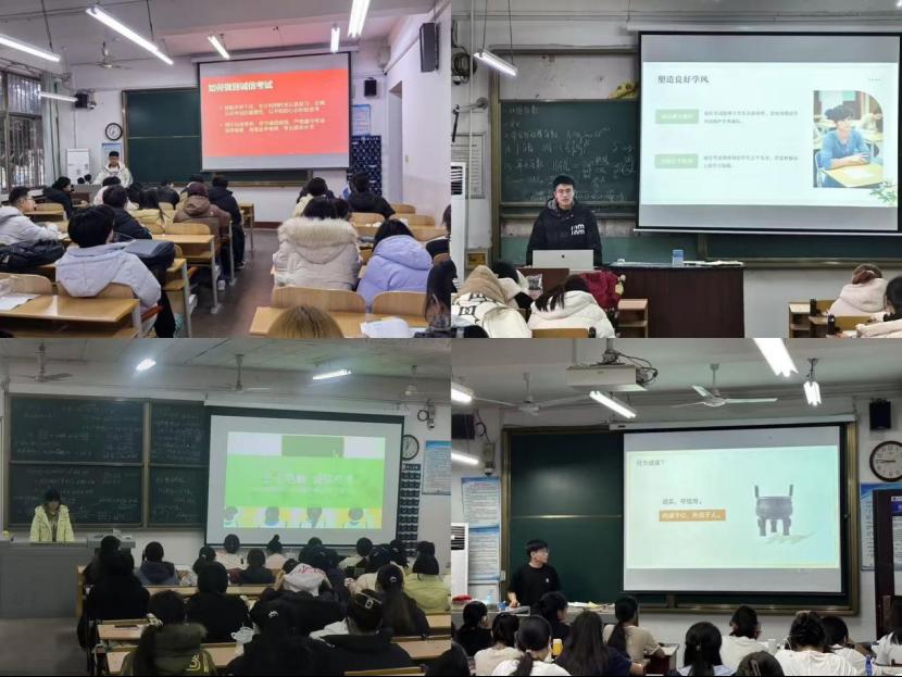 活动准备期间,纪检部负责人对2024级各班班长进行考风教育培训,强调要带动全体同学共同营造公平公正的考试环境,严禁作弊等不良行为。随后各班有序开展考风教育主题班会,班长向同学们讲述了学院关于诚信考试的严格要求以及相关规章制度,让大家清晰认识到作弊行为的严重后果。同学们踊跃发言,分享自己对诚信的理解,并庄严承诺遵守考试纪律,规范自己的行为。