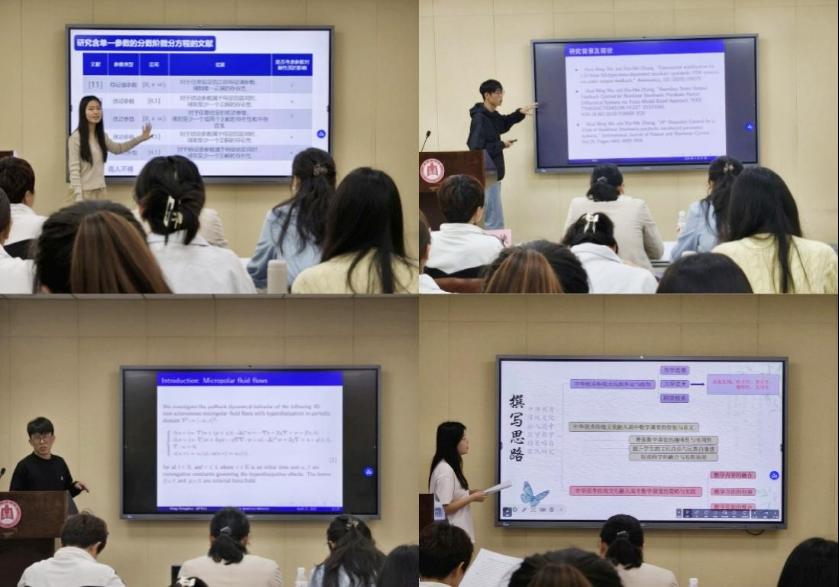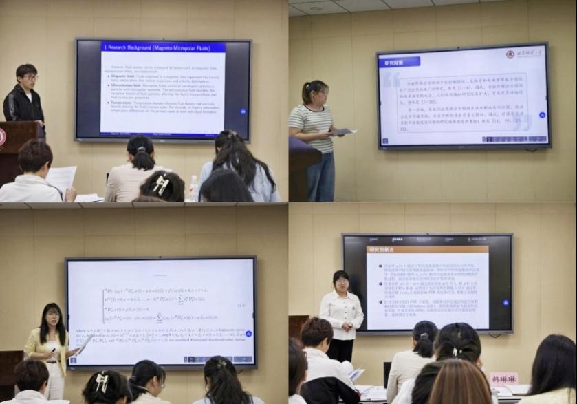 论坛围绕论文成果展示、评委点评和现场颁奖三个环节展开。汇报中,同学们结合PPT,聚焦基础数学、运筹控制等专业领域,系统阐述研究成果;点评环节里,评委老师从学术规范、方法创新、实际应用等角度,对汇报内容进行细致分析与专业指导,现场学术交流氛围浓厚。