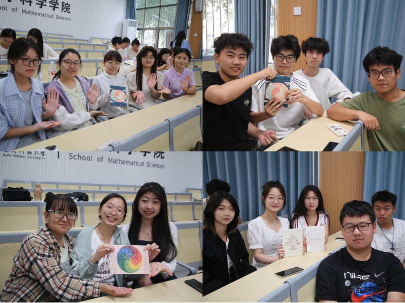 全体学生开展,活动以3-5人的小组形式报名参加。赛前,主持人详细介绍了活动主题及规则。在拼图环节,小组内成员紧密协作、分工明确,面对包含乾卦、坤卦等卦象,河图洛书、斐波那契螺旋线等图示,以及勾股定理、微积分公式等数学公式的拼图,同学们集思广益,引导人员适时上前提供思路和帮助。随后,各小组代表依次上台进行3 - 5分钟的经验分享,其他小组积极提问,互动热烈,将全场氛围推向高潮。最后,主持人对本次活动进行了全面总结,肯定了同学们在活动中的积极表现和深入思考,鼓励大家在今后的学习生活中继续探索数学与传统文化的融合之美。