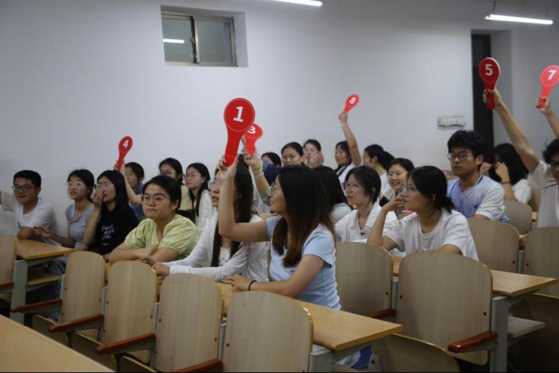 本次比赛精心设置了数学家、数学著作、数学定理三大题型。赛场上,选手们手持编号抢答牌,反应敏捷,知识储备丰富,在智慧与速度的激烈交锋中全力以赴。抢答环节扣人心弦,将全场气氛推向高潮,题目一公布,主持人“开始抢答”话音刚落,抢答牌便如起伏的浪潮般迅速起落。选手们抢答果断、应答流畅,充分展现了扎实的知识基础和临危不乱的心理素质 。