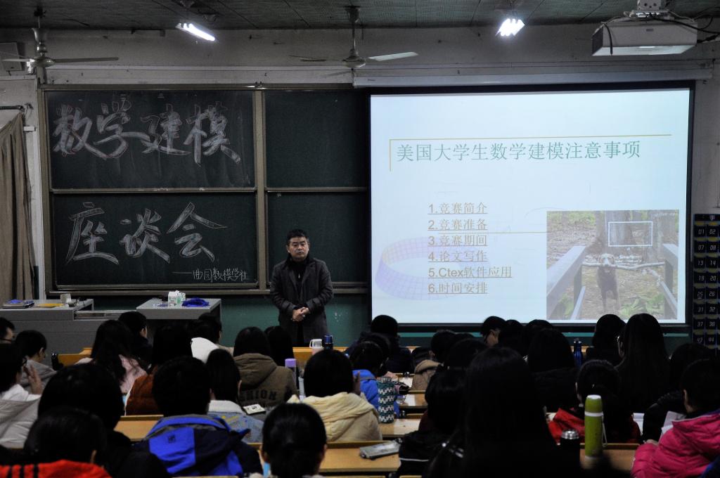 团委主办,曲园数模学社承办的数学建模座谈会在数学教学楼201室成功举办。徐伟老师作为主讲人为大家介绍数学建模。