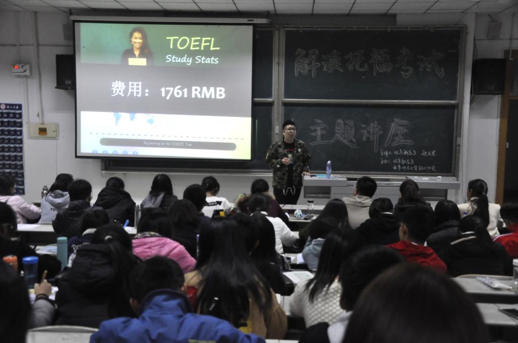 ELC协会特邀请北京新东方资深专家赵云龙为大家开设了此次讲座。讲座中,赵云龙老师依据他多年研究托福考试的经验,与大家分享了他对托福考试的理解,并就考试流程、注意事项、如何准备等为同学们进行了详细的解读。赵老师表示,在日常英语学习中,要注意学习的方法和技巧,注意素材的积累与应用,努力让自己的英语水平达到更高的高度。老师专业而又不失幽默感的语言更是让现场气氛十分活跃。现场同学,都认真听讲,并就重点内容做了摘抄笔记。全场掌声不断随着国际间交流的日益频繁以及就业竞争的日趋激烈,越来越多的人热衷于选择出国留学,而托福考试则是出国留学(美国、加拿大)的必备考试。为了让大家深入了解有关托福考试的问题,性爱网站