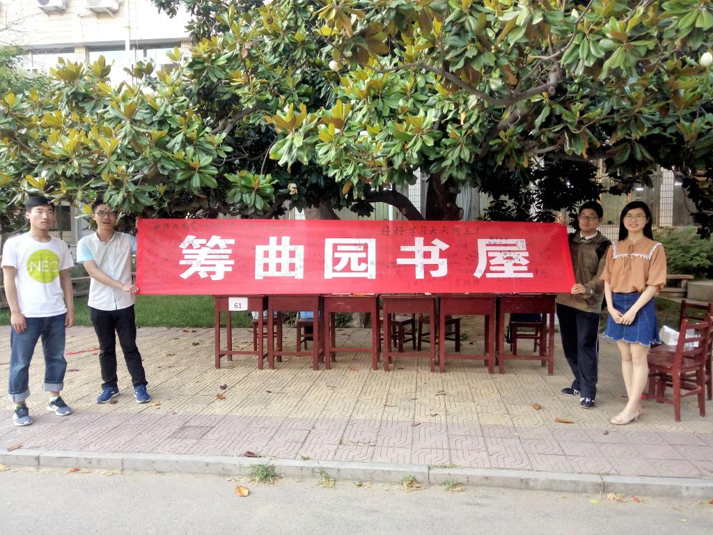 于5月25日在数学教学楼前举办了“筹曲园书屋,创温馨团风”捐书公益活动,15级于16级部分同学参加了此次活动。