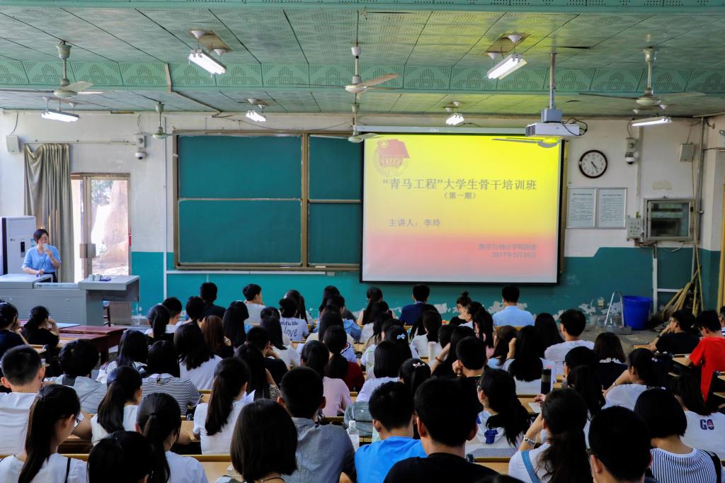 5月26下午,由统计学院辅导员李玲主讲的“青马工程”大学生骨干培训会在数学教学楼101教室顺利开展,性爱网站