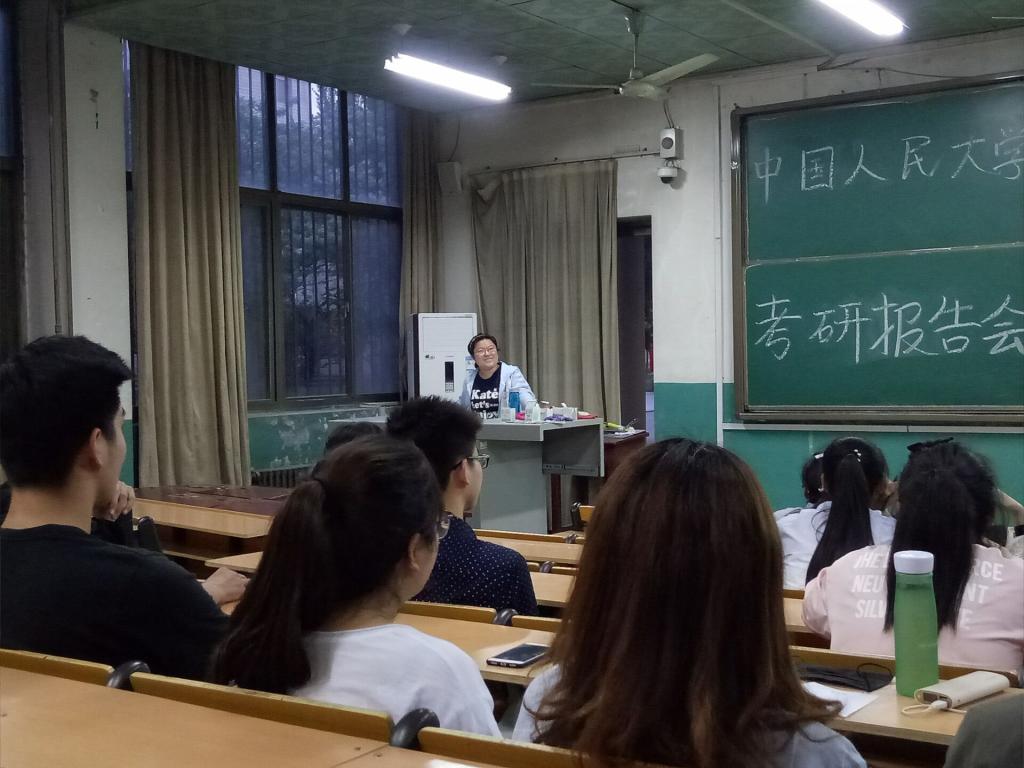 杜祯敏同学从自身考研经历出发,围绕如何选取专业和院校、指定复习计划、调整心态以及复试中的注意事项等方面谈了自己的亲身体验和感受。她提出了在政治、英语以及专业课复习上的具体可行的方法,如对于数学分析的学习要重点考察解题的思路,不要过分纠结于细节。此外,她还详细的介绍了中国人民大学信息学院的研究生学习、生活、就业情况,以及中国人民大学的信息学及数学科学研究院的情况。并且,还对中国人民大学实验室发展建设情况,学术科研情况,暑假夏令营,研究生招考及存在的风险都做了详细介绍,让同学们对当前的考研形式有了深刻的理解,对中国人民大学的考研政策有了一定的认识。