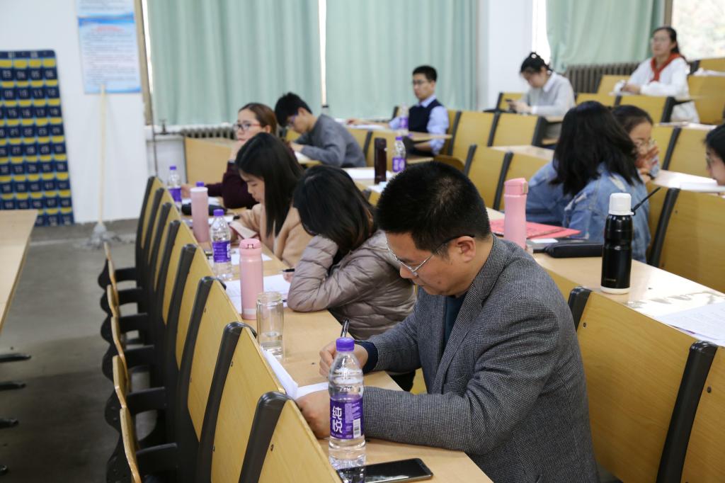 主持人致开场词并宣读了比赛规则和评分标准,大赛主要以“说课+模拟授课”的形式进行,从学情分析、教学过程、教学方法、多媒体使用、板书设计等方面对选手进行综合考核。随后,参赛选手按照抽签顺序依次上台,进行现场模拟教学展示。选手们沉着冷静、仪态大方,授课思路清晰、教学语言标准,板书整洁规范,内容丰富生动。评委本着公平公正的原则对各位选手进行点评打分,并根据每位同学在授课环节中存在的不足提出了的相应建议和看法。最终,孙刚,刘晓童两位同学获得本次比赛的一、二名。