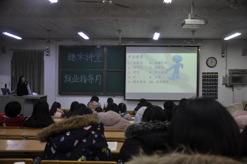 就业指导月趣味讲堂活动暨首届创新公益服务项目大赛于数学教学楼101成功举办,17、18级部分同学参加了此次活动。
