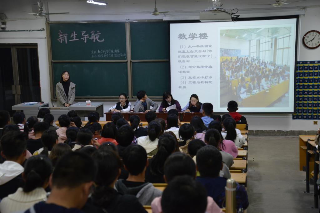团委主办的新生导航活动在数学教学楼圆满举行,学院党委副书记刘建新出席讲话,学生会部长,优秀学生代表及2018级全体新生参加了此次活动。