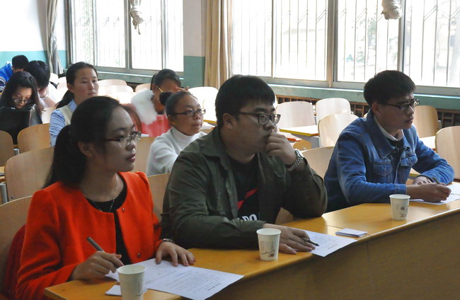比赛伊始,主持人宣读比赛流程并简单介绍评分标准。比赛开始后,选手按抽签顺序上台进行8分钟的现场模拟教学演示,他们洪亮的声音、标准的语言、大方的举止、整齐的板书、轻松幽默的课堂氛围和丰富有趣的授课内容赢得评委和观众的一致好评。比赛最后评委对选手的讲课内容进行打分点评,并按成绩确定进入决赛的选手名单。