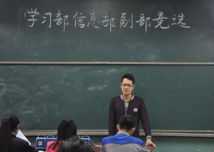 学生会各部门副部长竞选大会在数学教学楼顺利举行,学生会主席团成员及各部门部长担任竞选评审。
