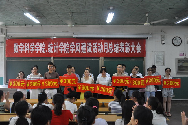 大会上表彰了在“学风建设月”活动中表现突出了集体和个人,向获得“全国大学生数学竞赛二等奖”、“美国数学建模比赛二等奖”、“全国大学生英语竞赛一等奖”以及获得“十佳学子”荣誉称号的学生颁发了证书和奖金。获奖代表做了典型发言。