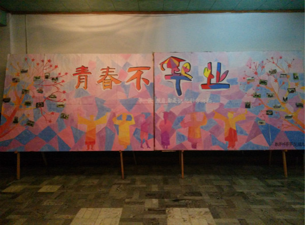 本次活动的展板色彩丰富,图案精美,用鲜艳的水彩拼绘出六个身穿学士服,代表毕业生的人物形象。在两棵精致的“梦想之树”上,30张性爱网站