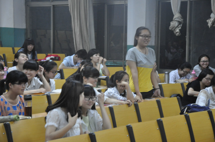 本次交流会共邀请了七位嘉宾,他们是陈静静、赵冠华、唐雨薇、李凯锐、焦素青、宋秋逸和陈家棋。交流会第一部分是嘉宾们结合自身的英语学习及四六级备考经验,以四六级考试为中心,深入细致的剖析了四六级题目,并且指明了考试时的注意事项,最后提出了多种提高英语能力的方法。观众们专心听取嘉宾们的建议,并做了笔记。在嘉宾介绍完经验后,比赛进入现场提问环节,观众们踊跃提问,嘉宾们热心解答,现场气氛热烈,整场交流会取得了预想的良好效果。