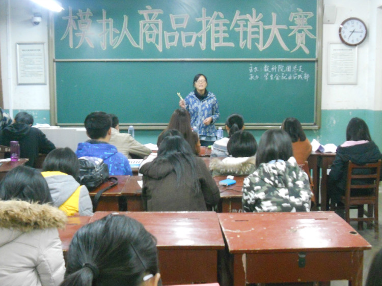 团总支部主办,就业实践部承办的“模拟商品推销大赛”活动于系楼104,107教室圆满举行。出席本次大赛的评委有纪检部副部长刘英龙、宿管部副部长李文杰、勤工助学部副部长张继莹、版宣部副部长王玉雪等。