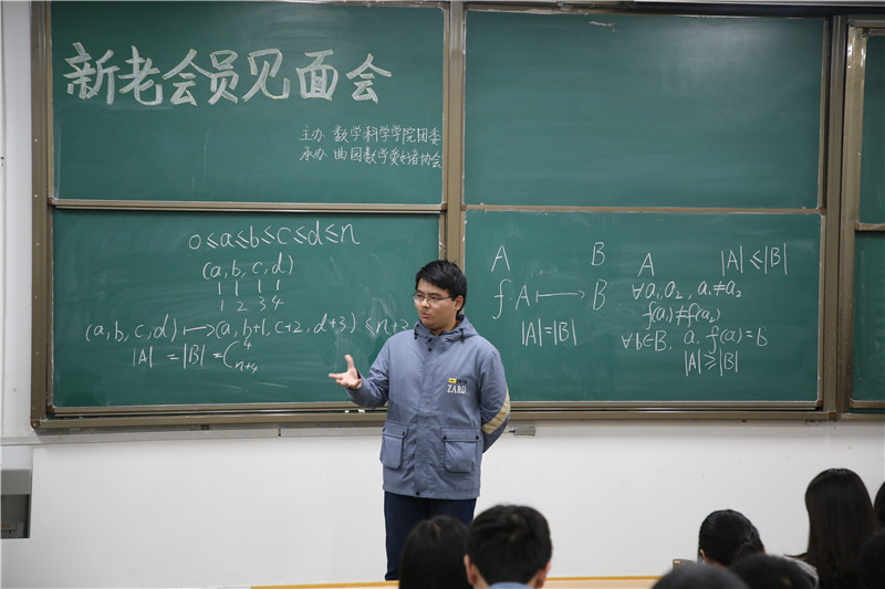 团委主办,曲园数学爱好者承办的数学爱好者新社员见面会,于数学教学楼101教室成功举办。曲园数学爱好者全体社员参加了此次见面会,见面会曲园数学爱好者协会社长许书晨主持。