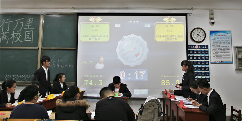 参加本次比赛的四组辩手,两两角逐,分别就“为实现人生价值,当代年轻人应该去远方还是回家乡”“高考应不应该降低英语分数的权重”展开辩论。辩论赛分为立论陈词、攻辩阶段、攻辩小结、自由辩和总结陈词五个环节,选手们旁征博引、引经据典,用灵活的思维和缜密的逻辑推理赢得了在场观众的阵阵掌声。最终,非师二班赢得本次辩论赛的最终胜利。
