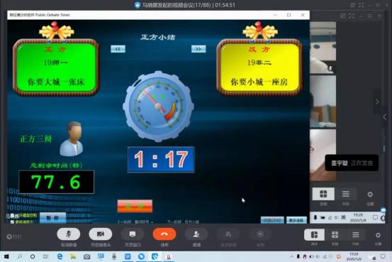 第一次以线上形式举办的辩论赛,很好地弘扬了五四精神。辩论能激发个人的潜能,提高对问题的审思,更能实现跨越灵感界线的沟通。校园辩论赛能够发掘和激励有才华的青年学生,为他们新时期成才提供更为广阔全面的展示自我的舞台,实现口才与思维质的飞跃。