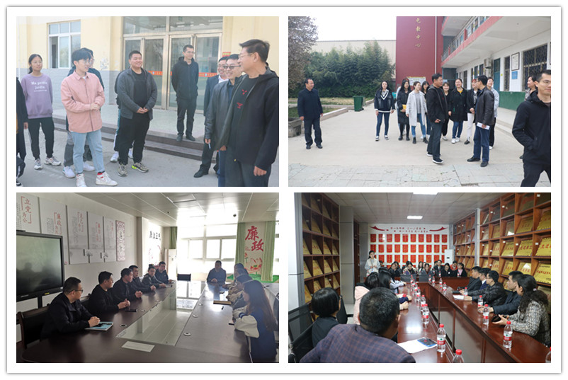 党委副书记曲凤东、辅导员徐腾飞与外国语学院党委书记费沂涛、党委副书记王作茂、教师伊纪昌、辅导员赵文彬等前往济宁市鱼台县和金乡县的17所中小学校共同看望指导我校实习支教学生,实地了解学生的实习教学状态,帮助学生解决工作及生活困难,落实落细学校实习实训管理责任。