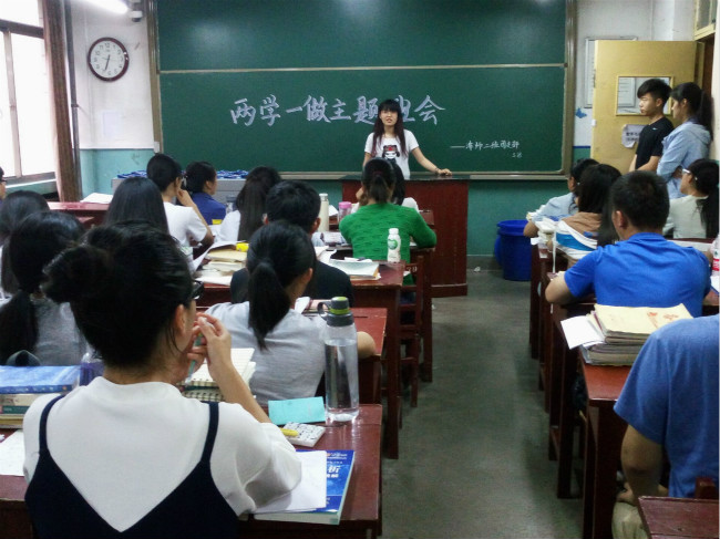 班会伊始,学生干部结合2015级学生特点,按照学校“两学一做”学习教育实施方案的安排作出讲话。他们详细介绍了“两学一做”的具体内容,并强调,开展“两学一做”学习教育,是面向全体党员深化党内教育的重要实践,是推动党内教育从“关键少数”向广大党员拓展、从集中性教育向经常性教育延伸的重要举措。同时鼓励同学们积极了解相关政策,以党员的姿态要求规范自己。