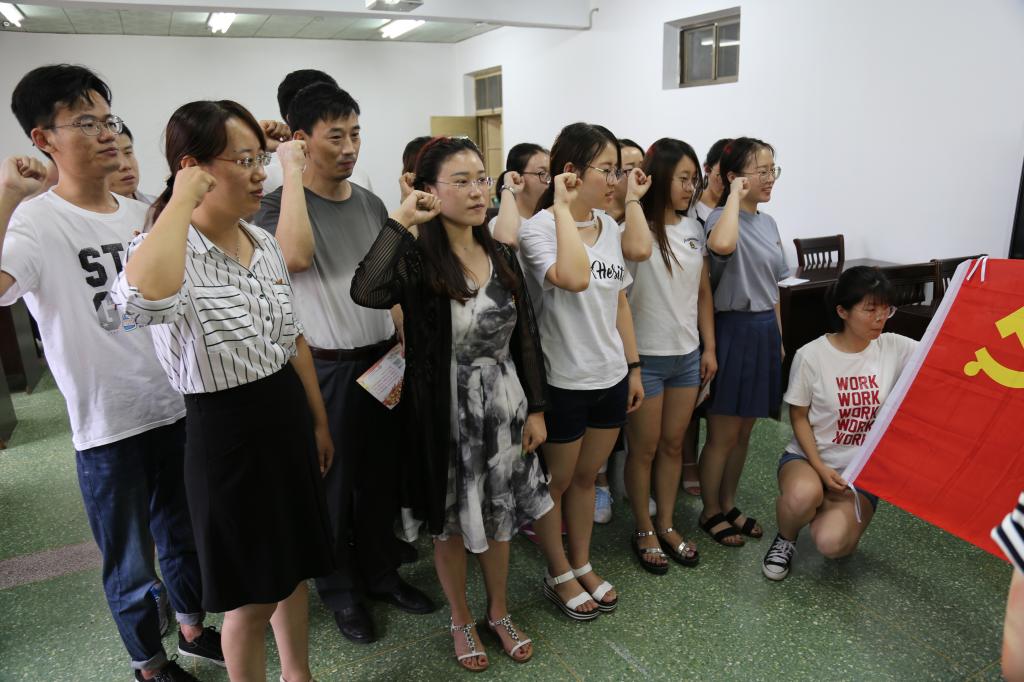 活动最后,全体党员面向党旗庄严宣誓。通过重温入党誓词,全体党员牢记初心使命。宣誓结束后,支部向每位党员发放庆祝我党成立97周年纪念卡片。