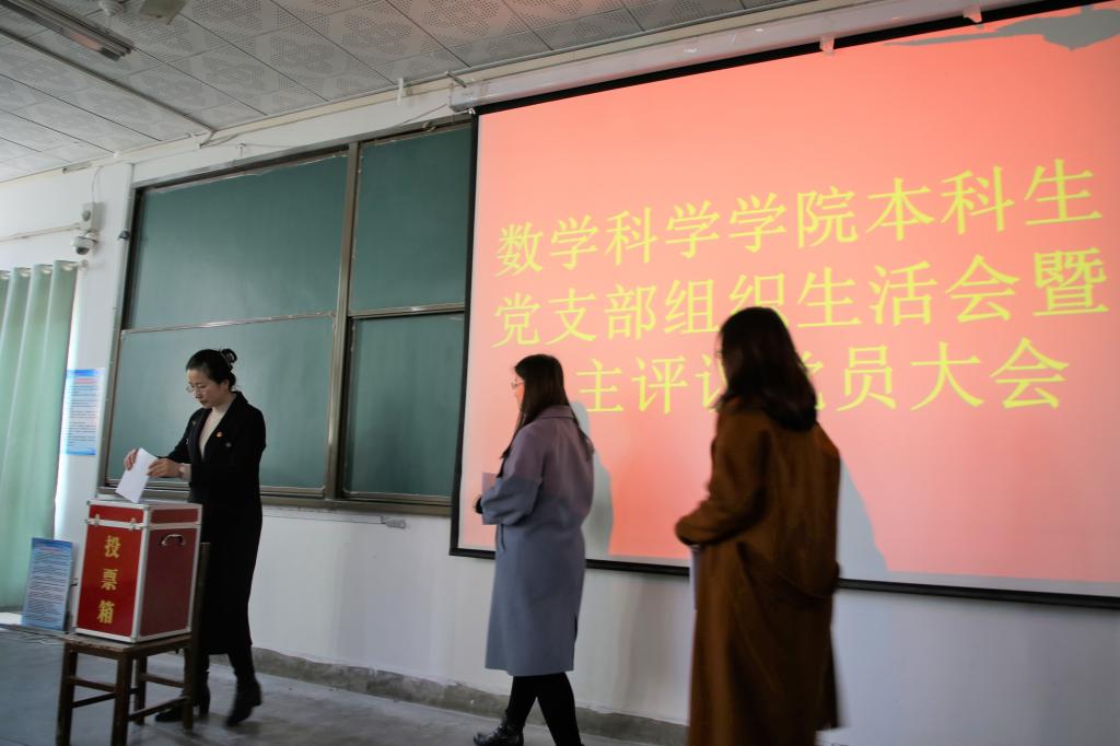 本科生党支部组织生活会暨民主评议党员大会在数学楼101教室成功举行。学院党委副书记刘建新,团委书记朱伟卫,辅导员郅艳梅、张惠,全体本科生党员代表参加了本次会议。