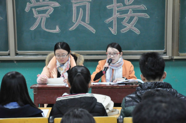 12月3日下午,性爱网站 本科生党支部党员发展大会暨预备党员接收大会于性爱网站 201教室成功召开。出席大会的人员有:性爱网站 本科生党支部副书记杜晨曦和组织委员郅艳梅。全体本科生正式党员、预备党员及发展对象参加了本次会议,会议由杜晨曦主持。