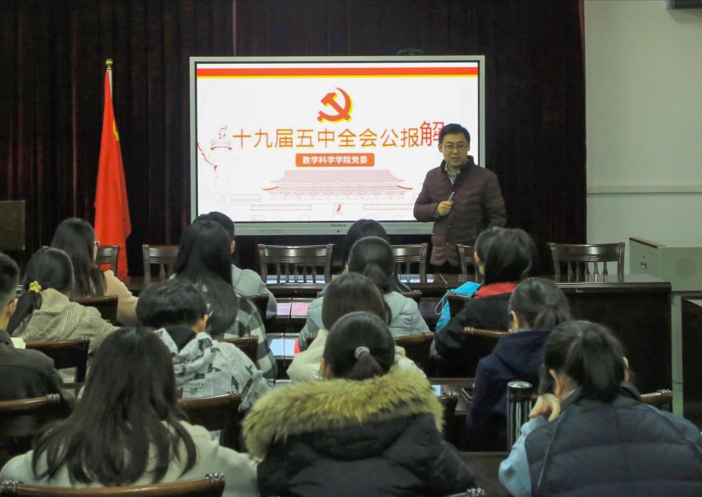 曲凤东同志主要从会议介绍、指导思想、“十三五”以来取得的成就、当前面临的机遇和挑战、总体目标、工作要求等五个方面对十九届五中全会进行了详细解读。他强调,党的十九届五中全会是在我国将进入新发展阶段、实现中华民族伟大复兴正处在关键时期召开的一次具有开创性、里程碑意义的会议。全会通过的《中共中央关于制定国民经济和社会发展第十四个五年规划和二〇三五年远景目标的建议》明确提出了“十四五”规划的指导思想、基本原则、目标要求,从各个领域提出一系列战略性、创新性举措,是开启全面建设社会主义现代化国家新征程、向第二个百年奋斗目标进军的纲领性文件。习近平总书记在全会上的重要讲话,科学回答了关系党和国家事业发展的许多重大理论和实践问题,是做好今后五年乃至更长时期我国经济社会发展工作、谱写经济快速发展奇迹和社会长期稳定奇迹新篇章的根本遵循和行动指南。当今世界正处于百年未有之大变局,机遇和挑战并存,新的历史时期,全体党员同志更要提高政治站位,深入学习贯彻十九届五中全会精神,全面系统学,深入思考学,联系实际学,用十九届五中全会精神筑牢信仰之基,补足精神之钙,把稳思想之舵。全体党员教师,要坚持用知识体系教,价值体系育,注重价值引领和道德行为养成,着力培养社会主义建设者和接班人;全体党员学生要坚持听党话、跟党走,练就过硬本领、投身强国伟业,与亿万人民一道,在实现中华民族伟大复兴的新长征路上奋勇搏击。